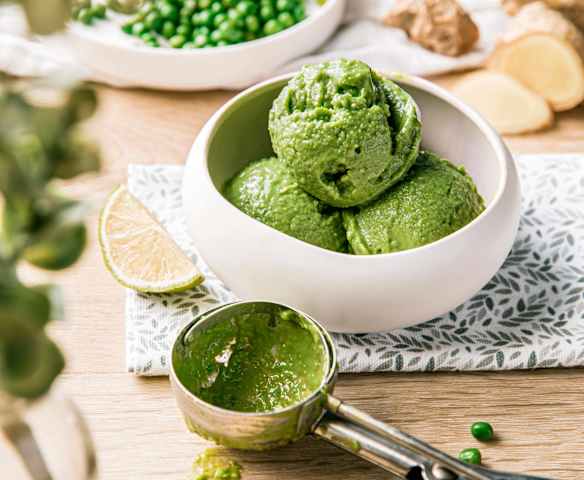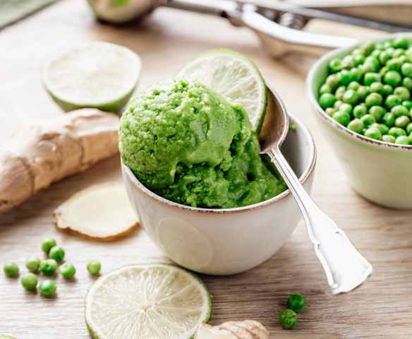 Sorbet petits pois, citron vert et gingembre