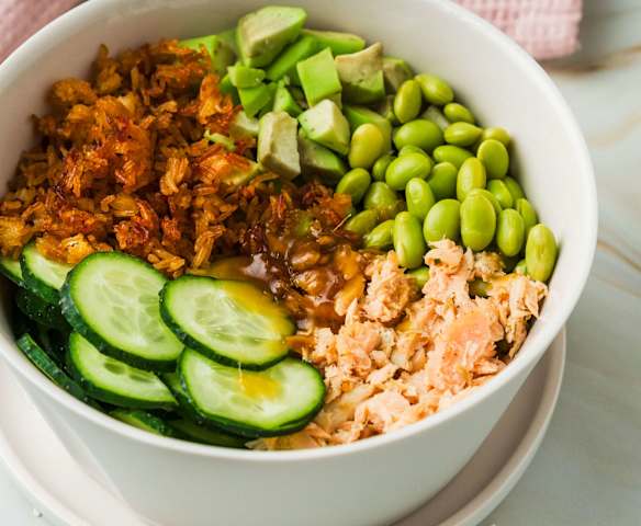 Sałatka z chrupiącym ryżem i łososiem (TM5)