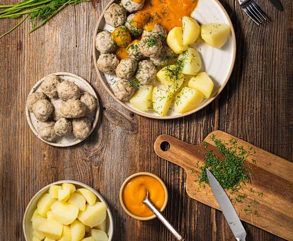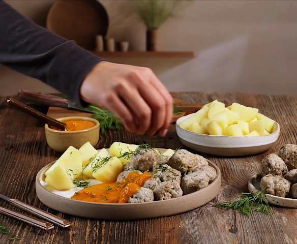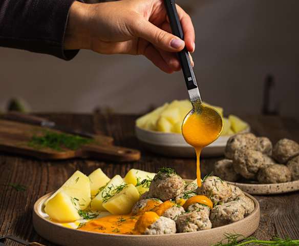Pulpety w sosie marchewkowym z ziemniakami