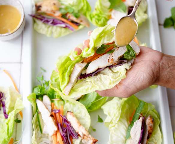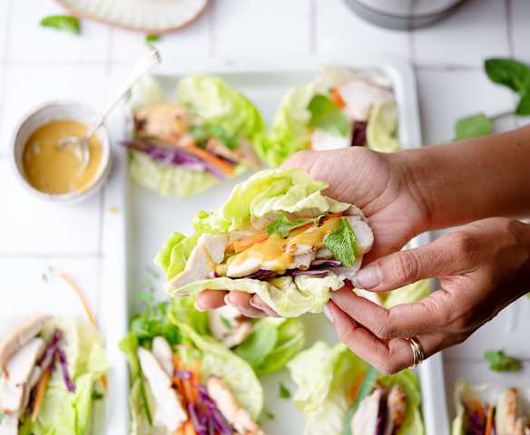 Wrapy z sałaty z kokosowym kurczakiem curry