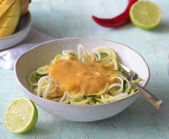 Makaron z cukinii z sosem mango-limonka