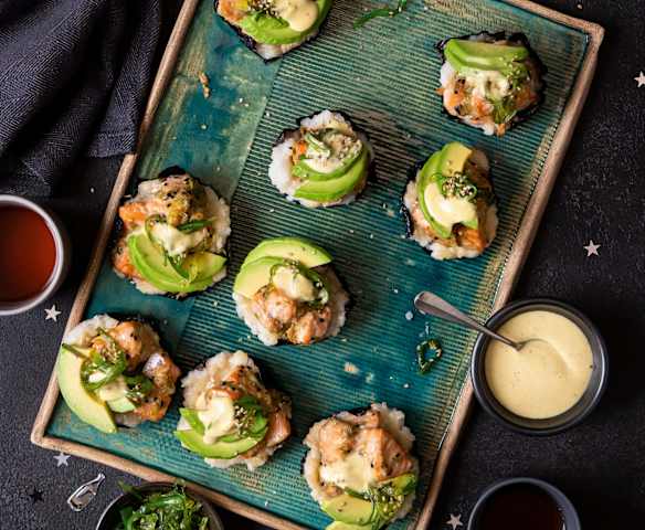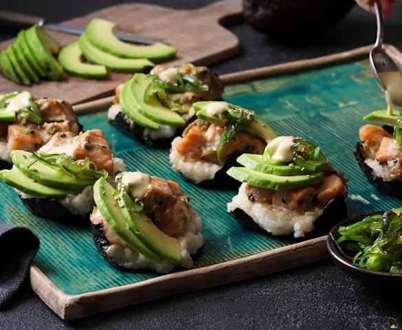 Sushi-Cups mit Wasabi-Majo aus ganzen Eiern