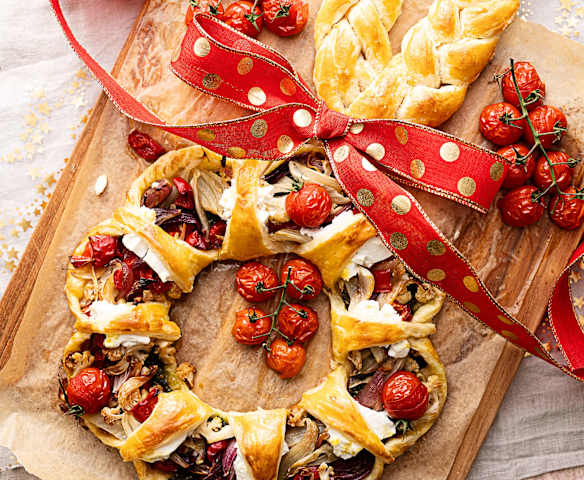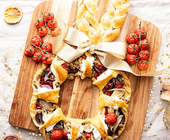 Wieniec z ciasta francuskiego z pieczonymi warzywami