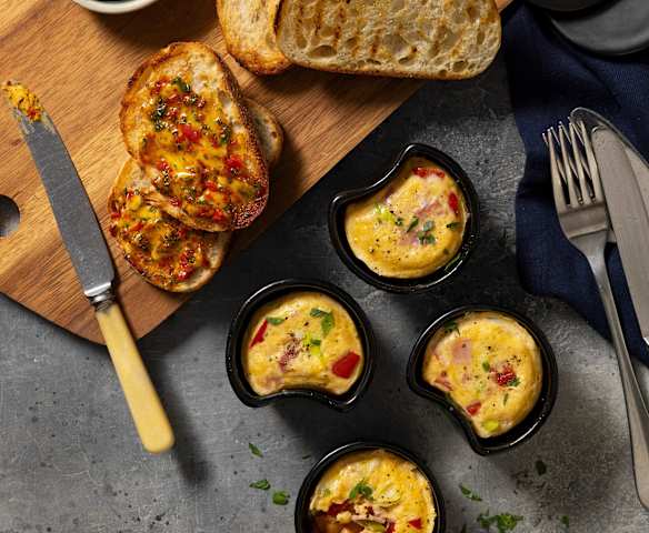Breakfast pots with chilli butter toast