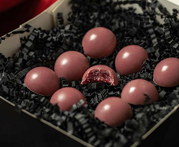 Bombones de chocolate rellenos de frambuesa al tequila