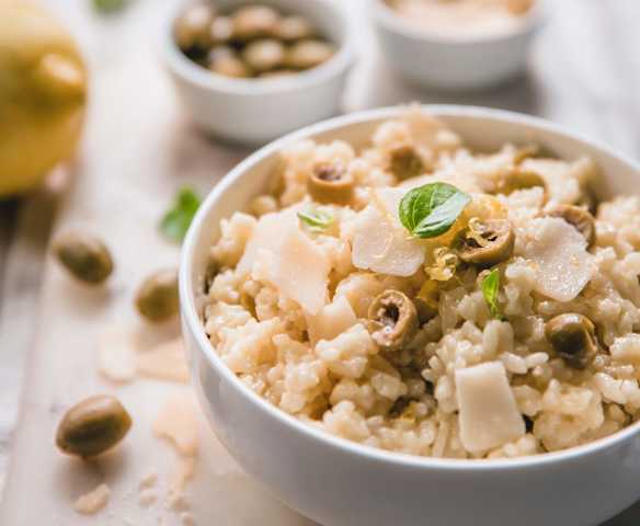 • de riz spécial risotto (Carnaroli, Arborio par ex.), 14-15 minutes de cuisson (voir "Conseil(s)")
