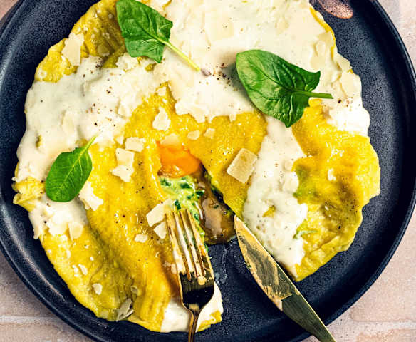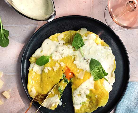 Riesen-Ravioli mit Trüffel-Spinat-Füllung und Eigelb