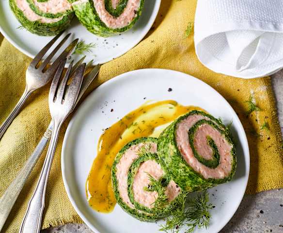 Rolada z łososiem z dressingiem koperkowym