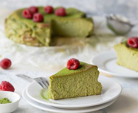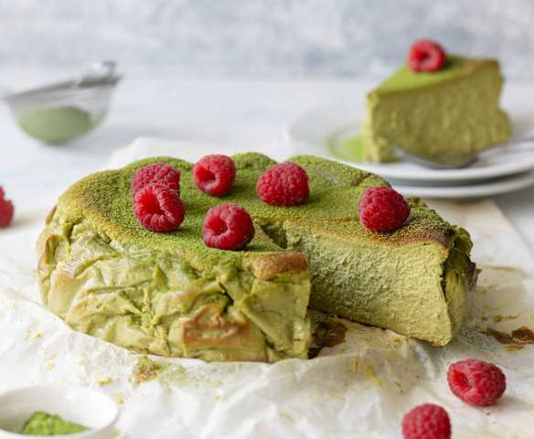 Baskický cheesecake s matchou