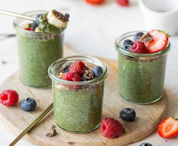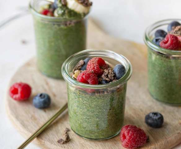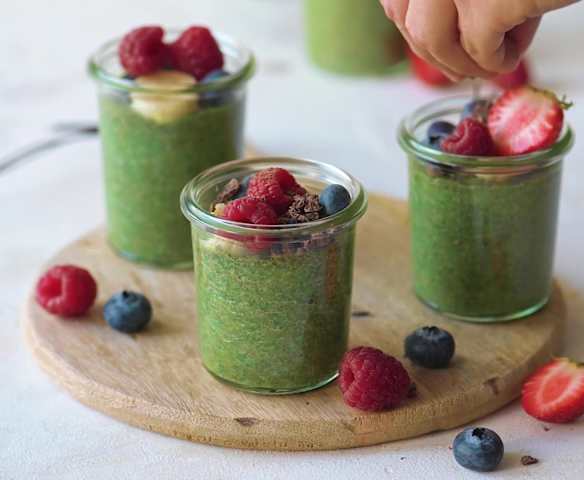 Chia puding s matchou a ovocem