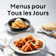 Demo Salade de légumes chauds, spaghetti aux tomates et champignons, et poulet avec riz et sauce aux poivrons rouges.