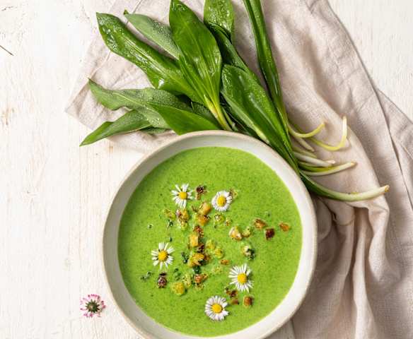 frische Bärlauchblätter grob geschnitten, etwas mehr zum Dekorieren150 g