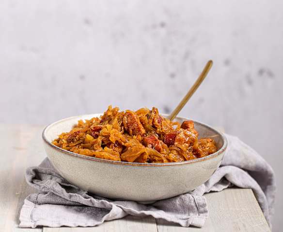 kiełbasy wieprzowej, wędzonej (np. śląska, toruńska), pokrojonej w półplasterki200 g