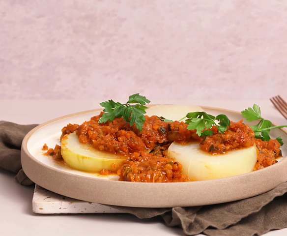 kalarepy obranej, przekrojonej na pół, pokrojonej w 0,5-1 cm półplastry600 g