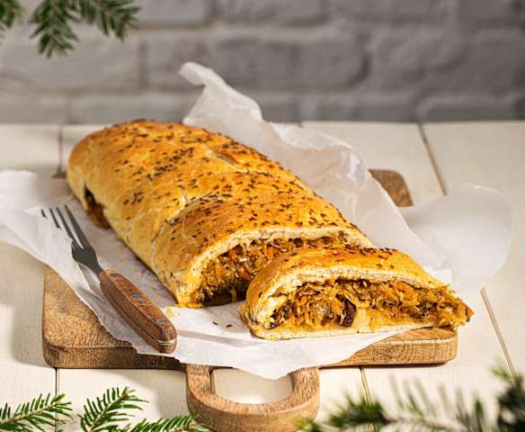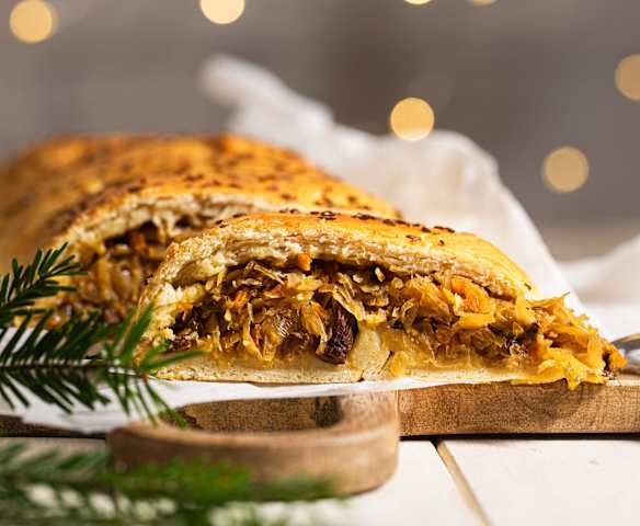 Kulebiak drożdżowy z kapustą i grzybami