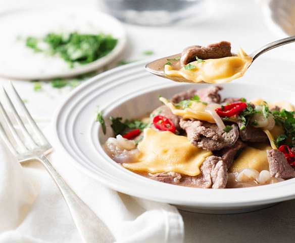 świeżego makaronu, typu ravioli o czasie gotowania 3-4 min, z dowolnym farszem250 - 300 g