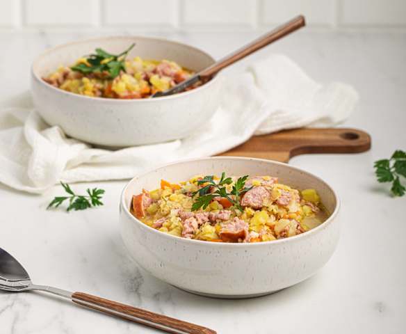 kiełbasy wieprzowej, wędzonej np. śląskiej, pokrojonej w 1 cm półplastry200 g