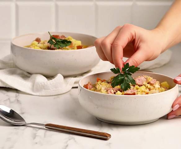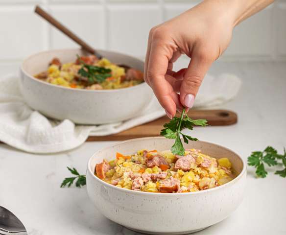 2 kostki bulionu mięsnego (na 0,5 l), pokruszonekoncentratu bulionu mięsnego, wykonanego w TM2 łyżeczki