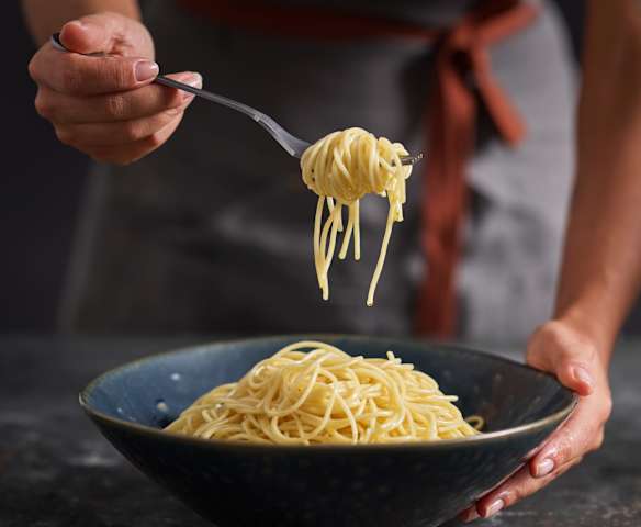 massa curta ou longa (ex.: penne, esparguete, tagliatelle)320 g