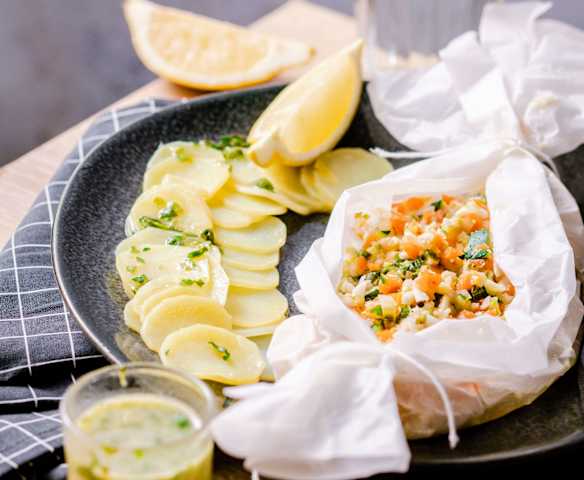Fish and mixed vegetable parcels