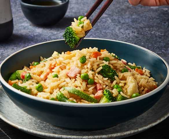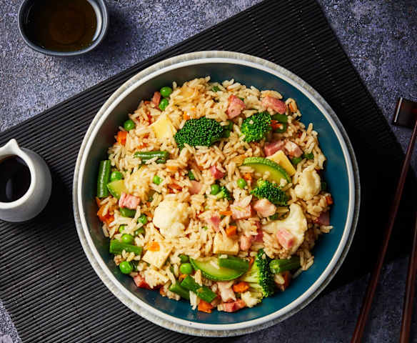 • mixed vegetables e.g. broccoli in small florets, frozen peas, cauliflower in small florets, green beans cut into pieces (1 in.), zucchini, in half moons (½ in.)
