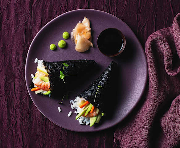 3 ½ oz sushi grade tuna, (thinly sliced lengthways)pre cooked shrimp (cut in half lengthwise, without shell)20