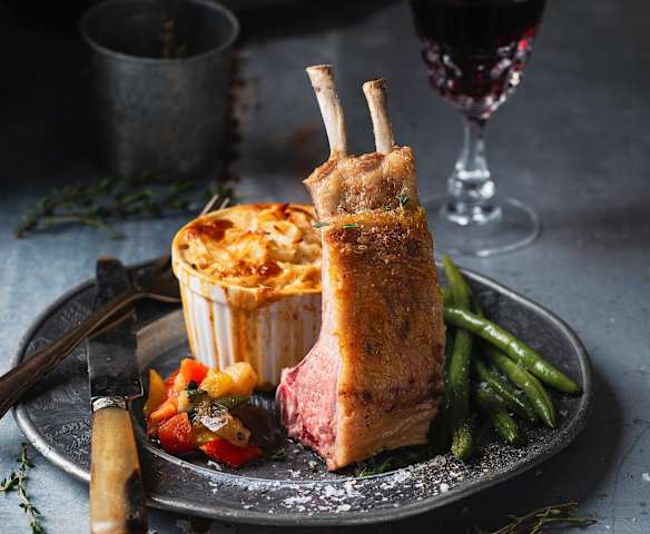 Lamb Chops with Ratatouille, Beans and Potato Gratin