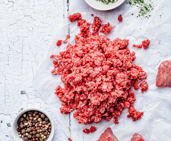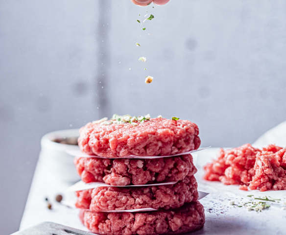 • meat, sinew free cut into pieces (½ in.), partially frozen in a single layer for 30-60 min.