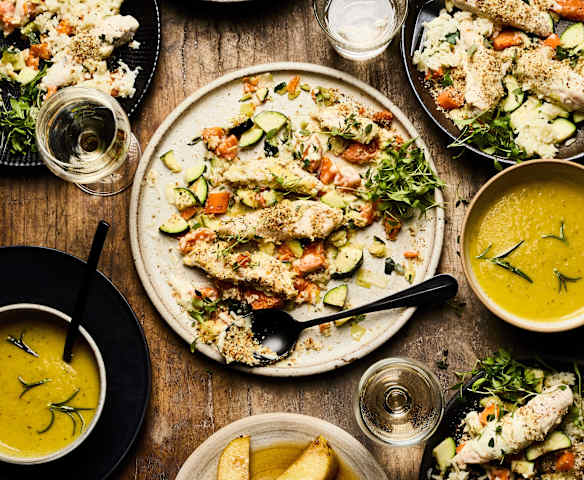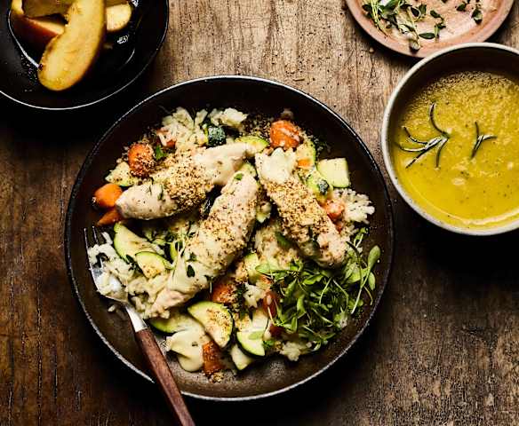 Three Course Meal for 2 - Vegetable Soup, Chicken Pie with Rice & Steamed Apple