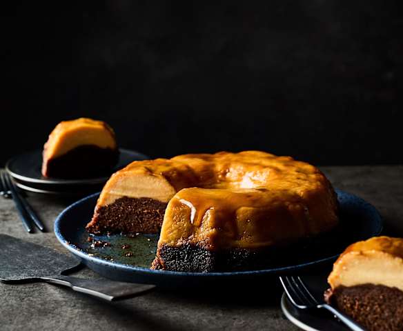 Bolo pudim de chocolate e baunilha a vapor