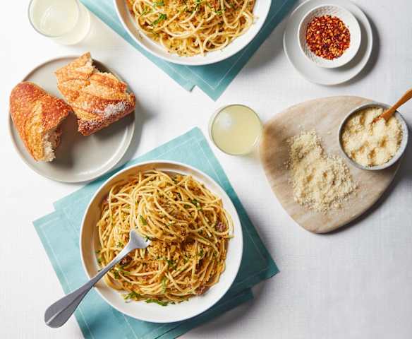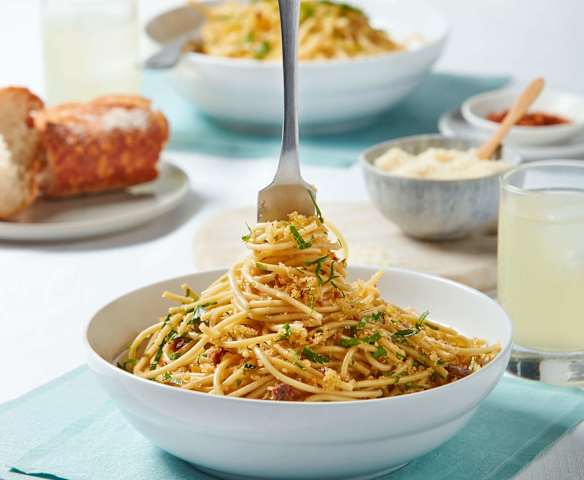 Spaghetti with Anchovies and Toasted Bread Crumbs