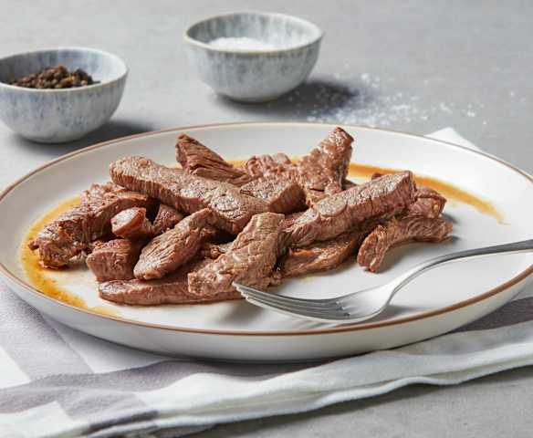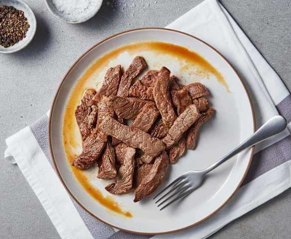 225 g beef tri-tip steak, trimmed, cut in strips (½ in. x 1-1½ in.), dried with paper towels