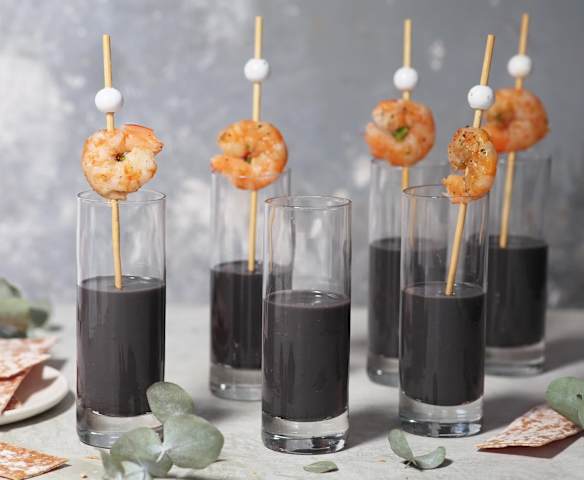 Vichyssoise negra con langostinos