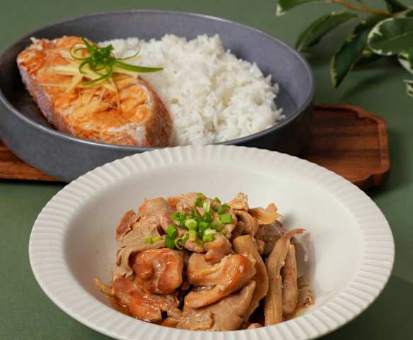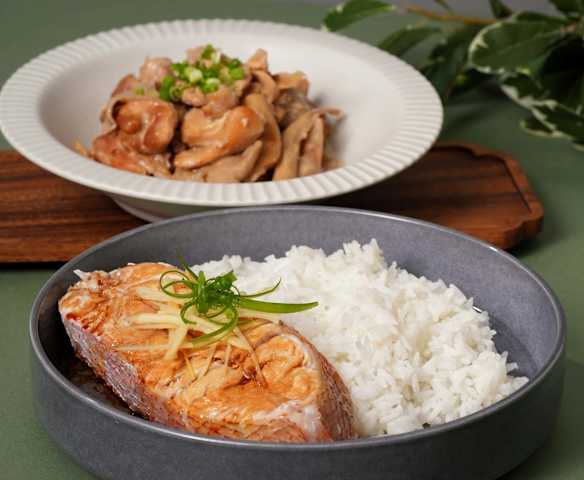 Three-in-One Steamed Fish with Ginger Scallion and Miso Chicken with Mushrooms