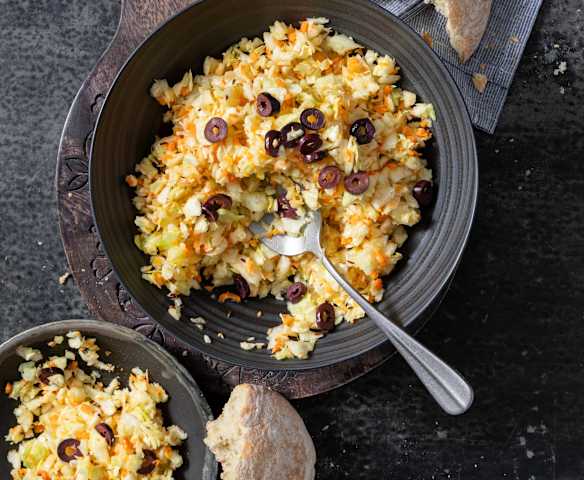 Spitzkohl-Slaw mit Datteln und Cashewkernen