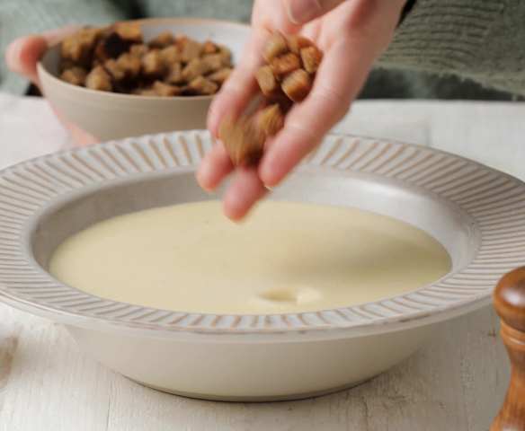 Knoblauchcremesuppe mit geröstetem Bauernbrot