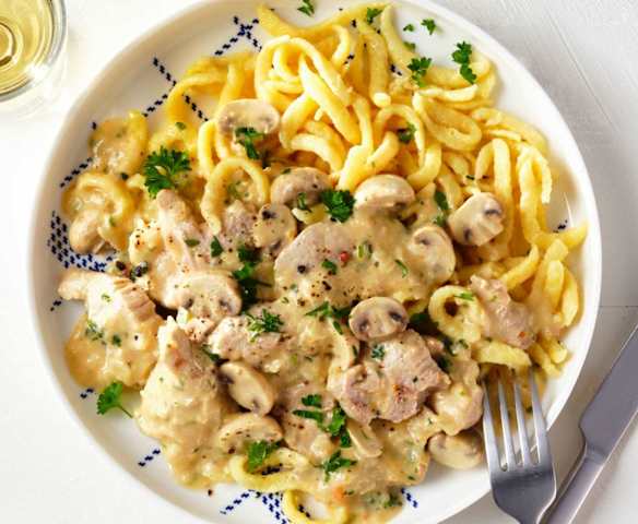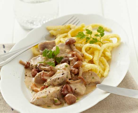 Schweinegeschnetzeltes Jäger Art mit Spätzle