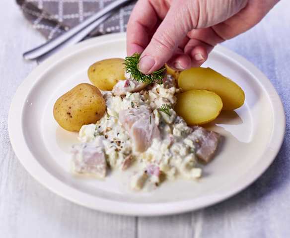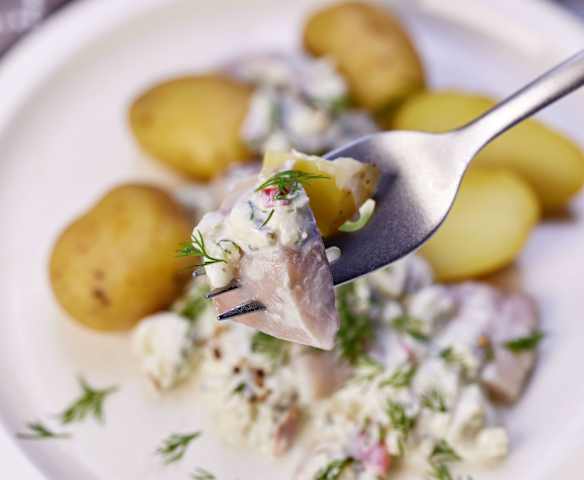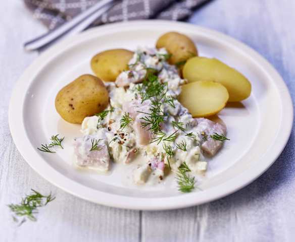 Steinbuttfilet auf lauwarmem Rote-Bete-Apfel-Salat mit Kartoffelgröstel