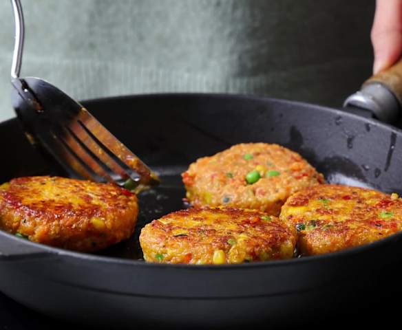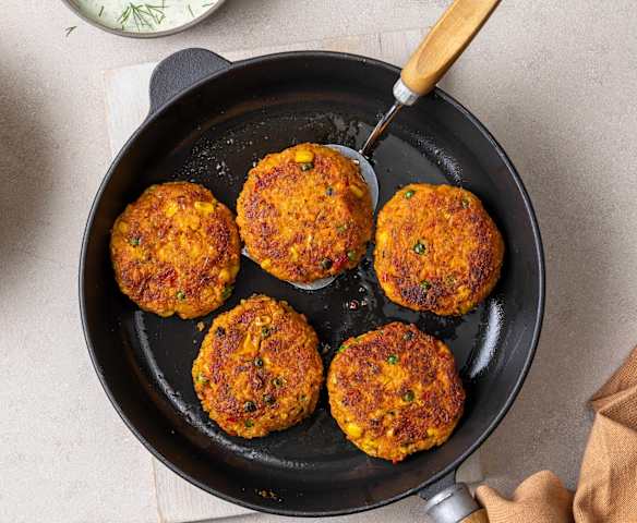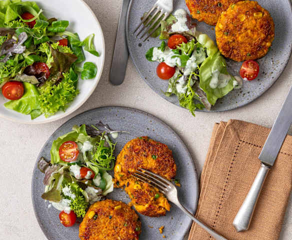 Gemüselaibchen auf Salat mit Joghurtdressing