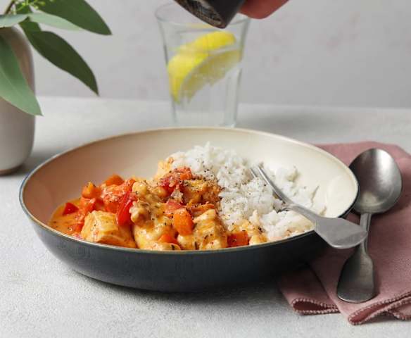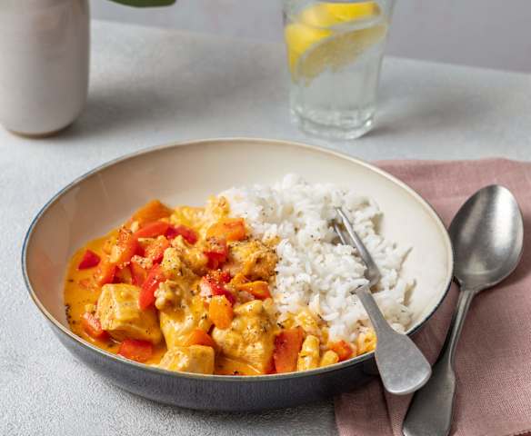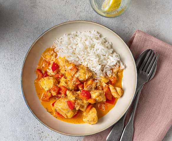 Hühnergeschnetzeltes mit Paprika und Reis