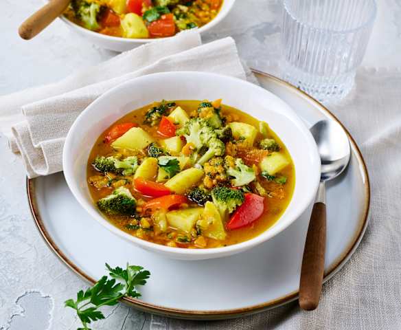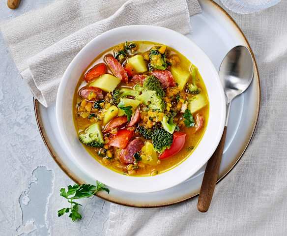 Gemüseeintopf mit Kartoffeln und Würstchen