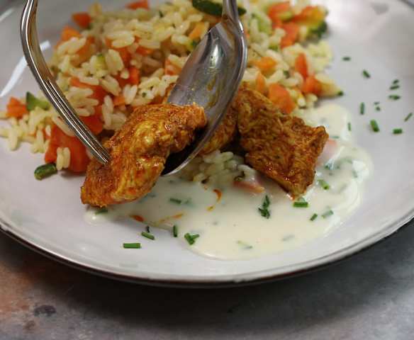 Pouletspiesse mit Erdnuss-Satay-Sauce