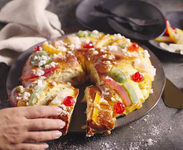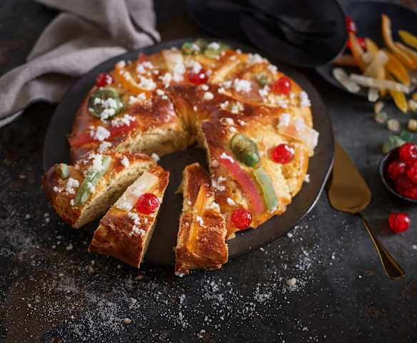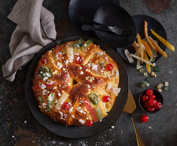 fruta cristalizada cortada em pedaços e/ou frutos secos, mais q.b. p/ decorar250 g