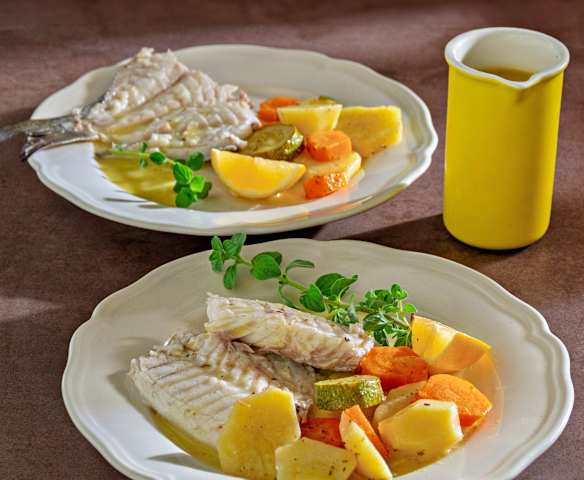 Λαβράκι με σάλτσα beurre blanc-πράσου και πατάτες