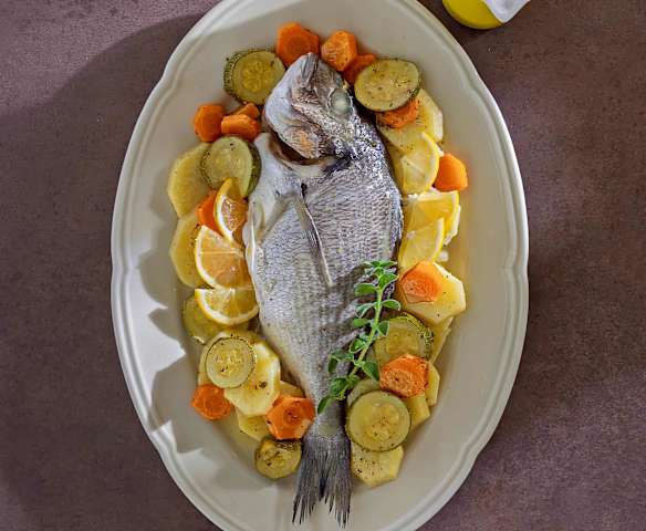 Τσιπούρες με πατάτες και σάλτσα ντομάτας
