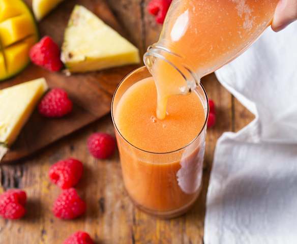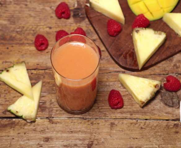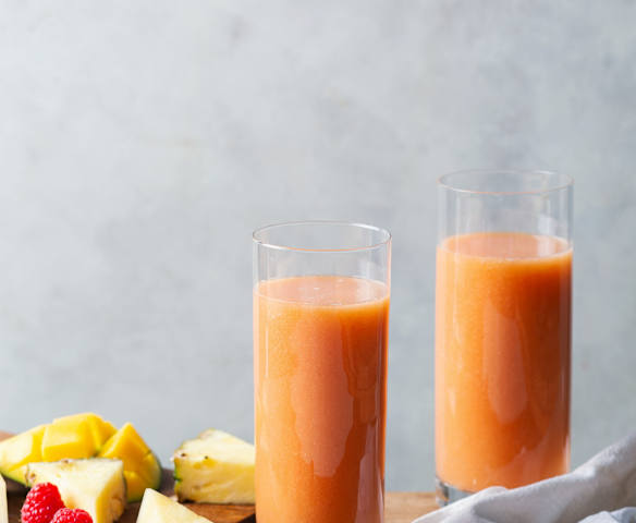 200 - 300 g WasserObstsaft (z. B. Apfel-, Orangen-, Trauben-, Ananas- oder Cranberrysaft)200 - 300 g
