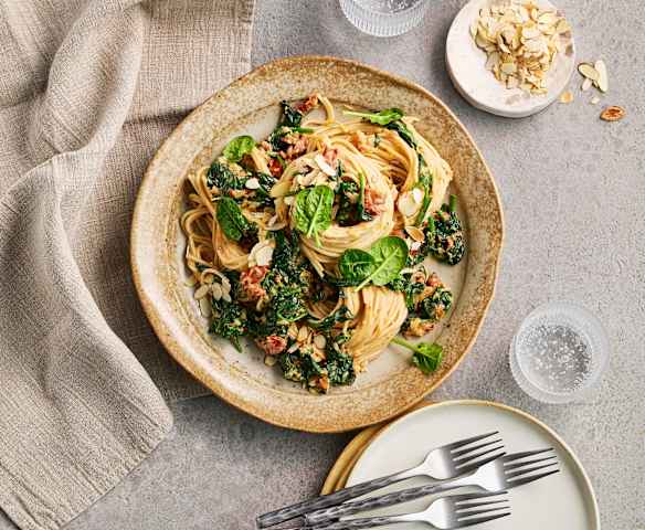 Falafel-Hummus-Bowl mit Aprikosen-Chili-Sauce
