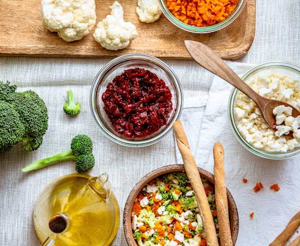 • mixed vegetables and fruit (e.g. beetroot, carrot, apple, capsicum, celery), cut into pieces (3-4 cm)
