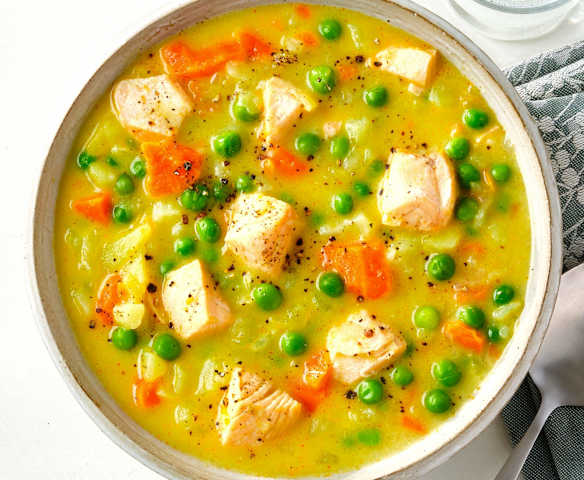 Kartoffel-Kokos-Suppe mit Lachs
