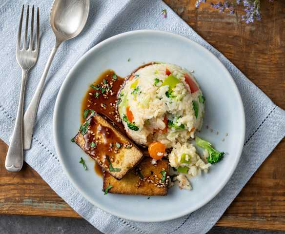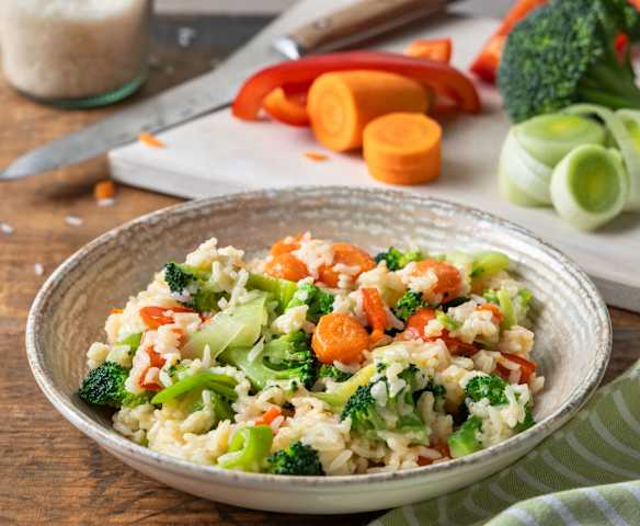 Basilikumrisotto mit Schmortomaten und Gemüse